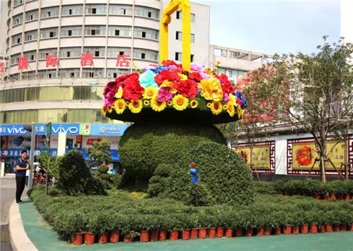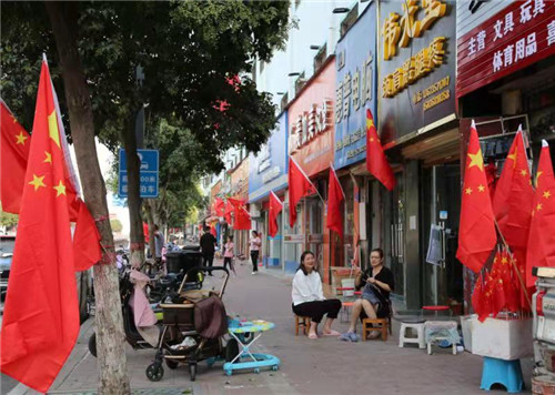 9月28日上午,記者來到紫氣大道、游客中心、上清湖、閆溝河、明道宮景區(qū)等地,看到臨街店鋪、文化中心廣場以及紫氣大道等主干道兩側(cè)路燈桿上懸掛的國旗隨風(fēng)飄揚(yáng),街頭游園內(nèi)擺滿了造型不一的鮮花盆景,大街小巷披上節(jié)日盛裝,老子故里人用行動(dòng)祝福祖國,愿祖國明天更美好。