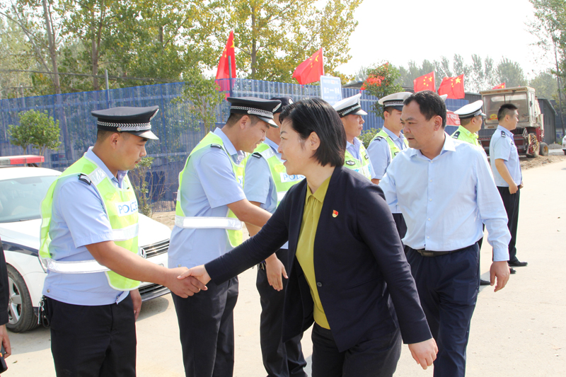國(guó)慶前夕,鄲城民警踐行新使命、忠誠(chéng)保大慶。全警投入堅(jiān)守一線,守護(hù)一方安全。9月27日,鄲城縣委書記羅文閣帶領(lǐng)縣四個(gè)班子領(lǐng)導(dǎo)到南關(guān)派出所、公安交通臨時(shí)檢查站、縣公安局等地看望慰問(wèn)一線值班民警,向他們表示衷心感謝和親切問(wèn)候??h領(lǐng)導(dǎo)李全林、崔衛(wèi)國(guó)、李建軍、馬超、縣公安局局長(zhǎng)陳鳳祥、政委趙紅建、縣政府黨組成員張仁杰等參加慰問(wèn)。