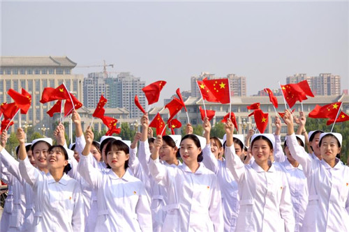 “我和我的祖國(guó),一刻也不能分割,無論我走到哪里,都流出一首贊歌……”9月29日上午,由市委宣傳部、市直機(jī)關(guān)工委主辦,周口報(bào)業(yè)傳媒集團(tuán)、周口廣播電視臺(tái)承辦的“學(xué)習(xí)強(qiáng)國(guó)——我和我的祖國(guó)”快閃活動(dòng)在和諧廣場(chǎng)舉行。來自市財(cái)政局、市城管局、市人民檢察院、市交通運(yùn)輸局、周口職業(yè)技術(shù)學(xué)院等市直單位近400人通過快閃形式歌唱祖國(guó),喜迎中華人民共和國(guó)成立70周年。