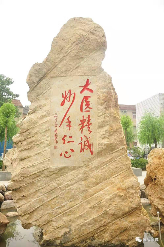 他雖然離開了鄲城,但一直關(guān)注著醫(yī)院的發(fā)展。醫(yī)院領(lǐng)導(dǎo)也多次到上??赐?,向他匯報(bào)醫(yī)院近年來的發(fā)展情況。2016年,鄲城縣人民醫(yī)院院長于健到上海看望他,聽到醫(yī)院近年來快速健康的發(fā)展進(jìn)程,周老先生非常高興,欣然提筆寫下“大醫(yī)精誠,妙手仁心”八個(gè)大字。周老先生的題詞被雕刻在一尊文化石上,座落在醫(yī)院文化廣場上。
