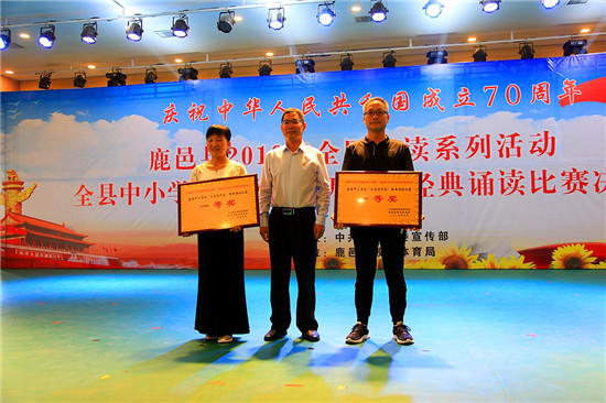 9月27日,由中共鹿邑縣委宣傳部主辦、鹿邑縣教育體育局承辦的慶祝中華人民共和國成立70周年、鹿邑縣2019年全民閱讀系列活動——全縣中小學(xué)生“歡樂進(jìn)萬家”經(jīng)典誦讀比賽(決賽)在弘德中學(xué)報告廳舉行,在初賽中嶄露頭角的十六個單位的近800名師生參加了決賽。