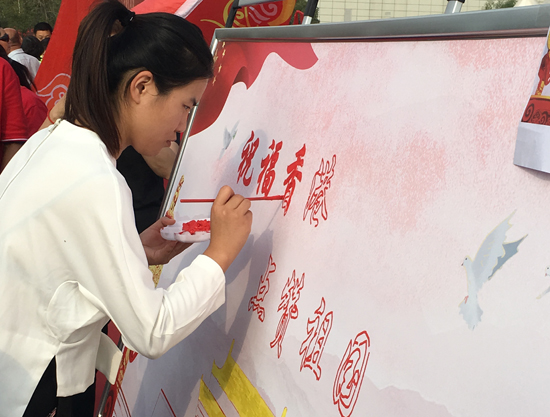 9月29日上午,來自我市各界的青聯(lián)委員及青年代表共同參與“祝福香港 點(diǎn)贊祖國”活動。活動現(xiàn)場,大家紛紛與國旗合影,并在簽名墻上寫下祝愿祖國的話語。
