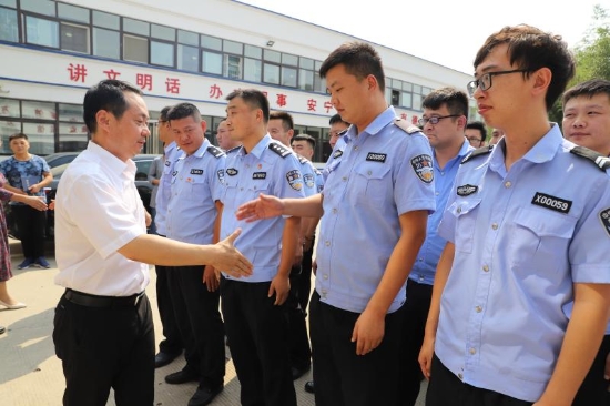 程若光主任對執(zhí)勤民警、輔警的辛苦付出表示誠摯慰問,對港區(qū)公安無私奉獻的精神給予充分肯定。程若光主任表示:港區(qū)公安分局是一支特別能戰(zhàn)斗、特別能吃苦、特別能奉獻的隊伍,為港區(qū)經(jīng)濟發(fā)展、掃黑除惡、打擊各類違法犯罪、維護社會大局平安穩(wěn)定作出了突出貢獻。今年是建國七十周年大慶之年,希望港區(qū)分局全體民警輔警繼續(xù)發(fā)揮艱苦奮斗精神,敢于斗爭、善于斗爭、勇于勝利、再接再厲,堅守工作崗位,為港區(qū)社會穩(wěn)定經(jīng)濟發(fā)展再立新功。并勉勵大家要以更加飽滿的精神、更加昂揚的斗志、更加頑強的作風,全力以赴做好新中國成立70周年大慶期間各項安保工作。最后,程若光向港區(qū)公安分局送去慰問金,囑托公安分局領導要安排好公安民警、輔警的工作和生活,為他們解決后顧之憂。