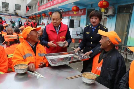 當(dāng)日凌晨5時許,太康縣愛心早餐點人頭攢動,熱鬧非凡,一輛裝滿新鮮蔬菜的大貨車停放在院中,20多名城管志愿者在太康縣城管局局長張愛梅的帶領(lǐng)下正從車上往下卸蔬菜。聽說愛心企業(yè)要為環(huán)衛(wèi)工捐贈蔬菜,太康縣委常委、統(tǒng)戰(zhàn)部長張新棟也放棄節(jié)日休息,天不明趕到太康愛心早餐點,加入到蔬菜裝卸行列?!肮?jié)日里,縣領(lǐng)導(dǎo)也不忘過來看望我們環(huán)衛(wèi)工,真讓人感動啊?!笨粗鴱埿聴?、張愛梅等人忙前忙后卸蔬菜,臉上浸滿了汗珠,環(huán)衛(wèi)工張大爺?shù)热藙忧榈卣f,“社會上有這么多好人關(guān)心我們環(huán)衛(wèi)工,我們再苦再累也值了!”