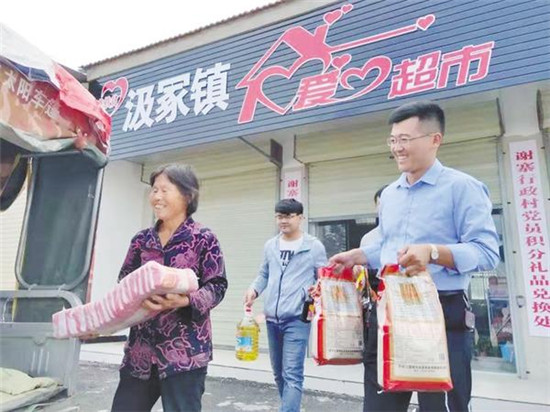 近日,記者在鄲城縣汲冢鎮(zhèn)謝寨行政村“愛心超市”看到,64歲的孫雪梅用鎮(zhèn)黨委、鎮(zhèn)政府給予的積分卡換取不少生活用品。為讓全鎮(zhèn)187戶兜底特困戶選到稱心如意的物資,汲冢鎮(zhèn)黨委、鎮(zhèn)政府匯聚全社會(huì)的愛心,備足米、面、油、棉衣、棉被等物資,將濃濃的黨恩通過“愛心超市”傳向千家萬戶。