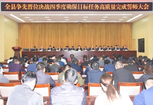 乘著周口市2019年第三季度項目觀摩的東風(fēng),扶溝吹響了決戰(zhàn)第四季度、奮力推動經(jīng)濟(jì)社會高質(zhì)量發(fā)展的“沖鋒號”。10月21日,扶溝縣召開爭先晉位決戰(zhàn)四季度確保全縣目標(biāo)任務(wù)高質(zhì)量完成誓師大會,深入貫徹習(xí)近平總書記在河南考察調(diào)研指示精神,動員全縣上下進(jìn)一步認(rèn)清形勢,堅定信心,鼓足干勁,加大力度,大干苦干,決戰(zhàn)決勝,全力以赴做好第四季度工作,確保全年目標(biāo)任務(wù)高質(zhì)量完成。張穎波、詹凱、姜永來、張建中等縣四個班子領(lǐng)導(dǎo)出席會議??h委副書記、政法委書記詹凱主持會議。