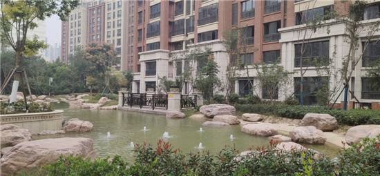 在九號院小區(qū),記者看到,地面用水沖洗得干干凈凈,院內(nèi)假山噴泉,小河潺潺流水,讓人置身其中,如在畫中游覽。