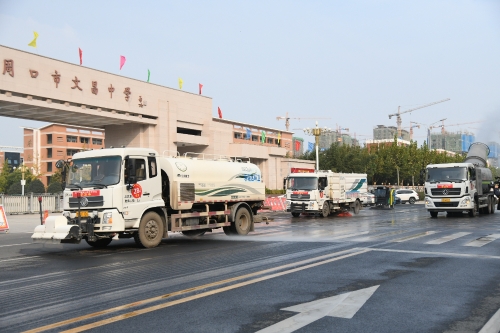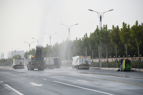 當日下午,記者在市區(qū)光明路演示現(xiàn)場看到,2部吸塵車利用強大的風機,在吸盤和路面之間形成瞬時負壓,將路面垃圾和塵土吸走,隨后緊跟1部高壓清洗車利用高壓水流,將剩下的路面垃圾和塵土沖到路邊,然后由2部洗掃車進行洗掃和收水,將沖到路邊的污水和垃圾收走,最后再緊跟1部抑塵車,利用環(huán)保除塵風送式噴霧機,進行噴霧降塵作業(yè),實現(xiàn)一次聯(lián)合作業(yè),即可將路面浮塵、垃圾、污水、揚塵等徹底清除,最大限度避免造成二次污染和對道路通行造成的干擾。