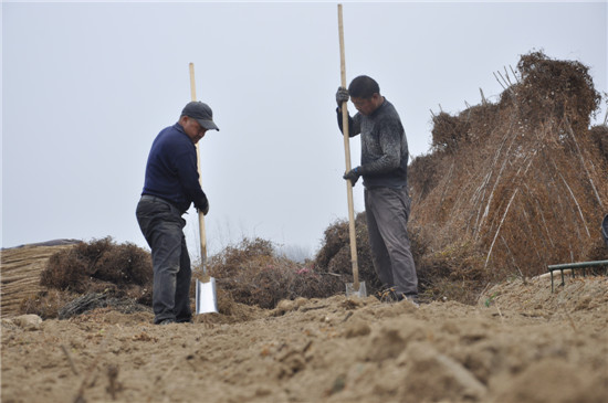 他從最早用尖頭鋼鍬開始,逐漸改為扁頭鋼鍬,再改用目前的鋼筒鍬。耿金中說,挖山藥是一個(gè)體力活,也是一項(xiàng)技術(shù)活,挖山藥多少跟個(gè)人技術(shù)熟練程度有關(guān),因?yàn)樯剿幒艽啵昧Ψ执?、下鍬角度及深淺不合適都易造成山藥折斷,影響品質(zhì)。