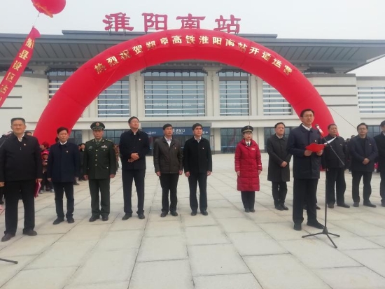 當日上午,暖陽高照,淮陽南站站前廣場人頭攢動?!案哞F來了,激動人心”。為祝賀高鐵開通這一大喜事,淮陽縣舉行了簡樸的鄭阜高鐵淮陽南站正式運行儀式,縣四個班子領(lǐng)導和有關(guān)部門負責同志及附近廣大群眾參加了儀式。