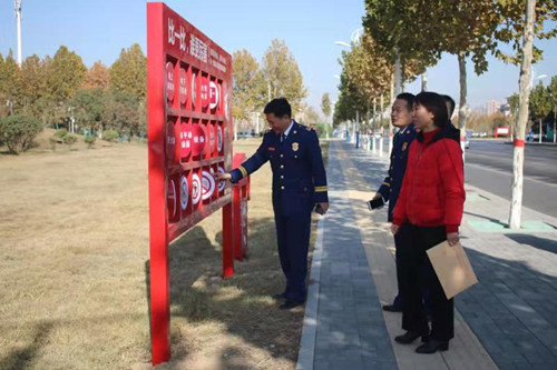 曹輝對(duì)示范區(qū)消防主題公園及示范街的建設(shè)給予了肯定,同時(shí),提出了合理化建議,他要求:一是提升宣傳陣地質(zhì)量,結(jié)合周邊環(huán)境及文化特色,進(jìn)一步完善標(biāo)語(yǔ)標(biāo)牌和固定設(shè)施,確保陣地化消防宣傳效果;二是加強(qiáng)宣傳內(nèi)容針對(duì)性,突出消防文化主題,將宣傳內(nèi)容多元化、多樣化、獨(dú)特化,引導(dǎo)居民群眾主動(dòng)關(guān)注消防、參與消防;三是創(chuàng)新消防宣傳體驗(yàn),集觀賞性、教育性、互動(dòng)性為一體,建立宣傳長(zhǎng)效機(jī)制,擴(kuò)大消防知識(shí)宣傳教育覆蓋面;四是堅(jiān)持高標(biāo)準(zhǔn)打造,示范街建設(shè)要嚴(yán)格落實(shí)“五有、五無(wú)、五到位”管理標(biāo)準(zhǔn),堅(jiān)持“示范引領(lǐng)、以點(diǎn)帶面、全面推廣”原則,推進(jìn)社會(huì)單位標(biāo)準(zhǔn)化、規(guī)范化、精細(xì)化管理,真正做到高標(biāo)準(zhǔn)完成打造。