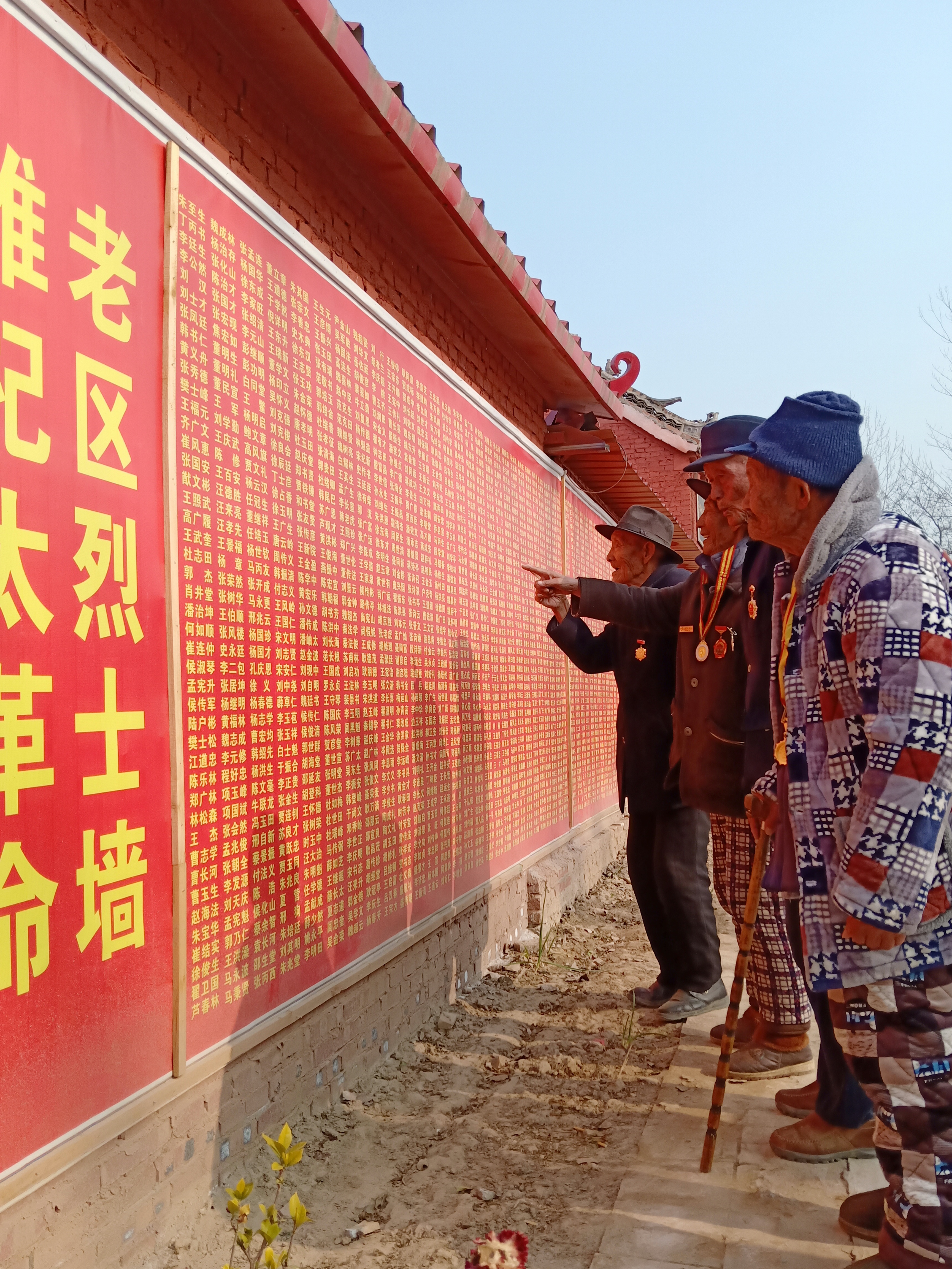 12月13日,在豫東平原一個(gè)名不見經(jīng)傳的小村莊——太康縣楊廟鄉(xiāng)三官?gòu)R村,該村及附近村莊的郭澤林(91歲)、孫增禮(93歲)、王福慶(94歲)、張新學(xué)(92歲)等抗戰(zhàn)老兵,邁著蹣跚的步子來(lái)到三官?gòu)R革命紀(jì)念館,在一面鐫刻著3800多名革命先烈名字的烈士墻上默默地尋找著自己戰(zhàn)友的名字,久久不愿離去……