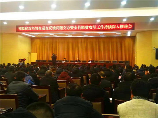 1月3日,扶溝縣召開省脫貧攻堅(jiān)督查巡查問(wèn)題交辦暨全縣脫貧攻堅(jiān)工作推進(jìn)會(huì)??h委副書記、縣政法委書記詹凱主持會(huì)議??h委常委、縣政府黨組成員段然,縣委常委、副縣長(zhǎng)趙紅亮出席會(huì)議。縣直各單位一把手、相關(guān)行業(yè)部門分管扶貧工作的副職,各鄉(xiāng)鎮(zhèn)(街道)黨(工)委書記、分管扶貧工作的副職、扶貧辦主任,81個(gè)貧困村的黨支部書記、駐村第一書記參加會(huì)議。