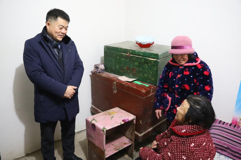 困難戶吳秀榮,今年90歲,老伴和三個兒子都分別因病去世,老人行動不便,家境困難,日常生活由兒媳婦照顧。孫紅偉來到老人床前,握著老人的手,詢問老人身體狀況,生活情況。吳秀榮非常高興,說媳婦照顧得好,平時政府和小區(qū)物業(yè)對她都很照顧,她非常感謝黨和政府的關(guān)心和幫助。孫紅偉向吳秀榮表達新春祝福,祝愿老人安度晚年。