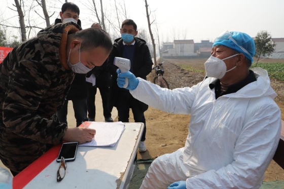起初,苑統(tǒng)俊配合村干部在村里宣傳疫情防控政策、方法,1月25日,我省啟動(dòng)一級(jí)應(yīng)急響應(yīng),港區(qū)迅速做出響應(yīng),在轄區(qū)內(nèi)各個(gè)村莊社區(qū)設(shè)置疫情監(jiān)控點(diǎn),限制人員流動(dòng),全天候監(jiān)測(cè)進(jìn)出人員身體狀態(tài)。苑統(tǒng)俊擔(dān)起監(jiān)控點(diǎn)村醫(yī)的職責(zé),負(fù)責(zé)該村一至四組的疫情防控。他每天騎電動(dòng)車前往孫莊村監(jiān)測(cè)點(diǎn)值守,為過往人員測(cè)量體溫、觀察外地返鄉(xiāng)人員狀態(tài)、登記觀察正處在隔離期的從湖北、武漢返鄉(xiāng)人員體溫?cái)?shù)據(jù),為鄉(xiāng)村干部開展防控工作提供技術(shù)支持。