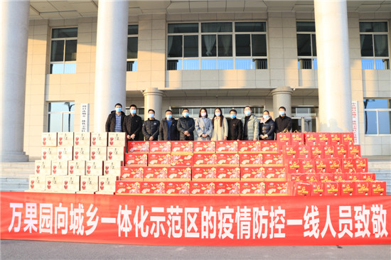 示范區(qū)黨工委委員王軼表示,當前,新型冠狀病毒肺炎疫情牽動著全國人民的心,在不同尋常的疫情面前,萬果園公司為戰(zhàn)斗在一線的疫情防控人員送來了精美的食品,他們傳遞著愛心,也傳遞著希望和信心,希望示范區(qū)一線工作人員不負重托,堅決勝利完成黨和人民交付的疫情防控的重任。
