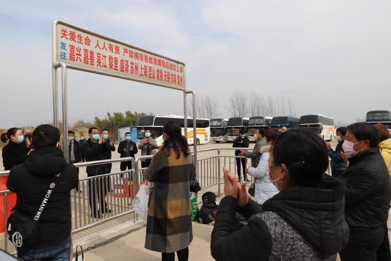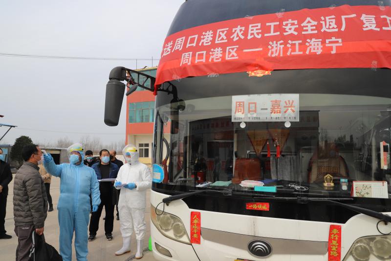 2月20日下午,24名農(nóng)民工從港區(qū)汽車站上車,8個(gè)小時(shí)后,他們將直接到達(dá)位于浙江海寧市的一家企業(yè)廠區(qū)。疫情防控期間,為方便居民外出務(wù)工,避免旅途過程中的交叉感染,周口港區(qū)采用“點(diǎn)對點(diǎn)”的形式,組織車輛幫助農(nóng)民工返崗。發(fā)車前,港區(qū)管委會主任程若光攜食品、飲料到場為司乘人員送行,并叮囑他們旅途中做好安全防護(hù)。