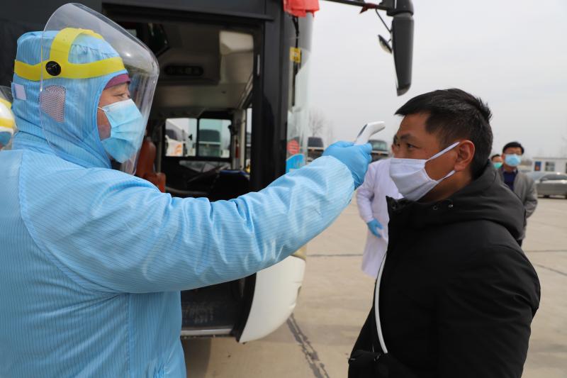 2月20日下午,24名農(nóng)民工到達(dá)港區(qū)汽車站,一輛經(jīng)過消毒后的59座大巴車已經(jīng)停靠在站點(diǎn)。人員進(jìn)站、上車前由港區(qū)醫(yī)護(hù)醫(yī)護(hù)人員為他們進(jìn)行登記測量體溫。周口港區(qū)交通分局局長王應(yīng)選介紹,接到任務(wù)后,交通分局與港區(qū)人社局、港區(qū)衛(wèi)生部門聯(lián)系,做好外出務(wù)工人員返崗消毒防疫的準(zhǔn)備,同時(shí),協(xié)調(diào)川匯區(qū),派出車況性能好、司乘人員素質(zhì)高的客運(yùn)車輛服務(wù)本次客運(yùn)。車站負(fù)責(zé)人苑本領(lǐng)介紹,為避免乘客之間相互感染,本班客車將嚴(yán)格按照疫情防控要求,將客座率控制在50%以內(nèi),汽車雙排座椅每排只能坐一名乘客,最后兩排作為隔離區(qū),不坐乘客。