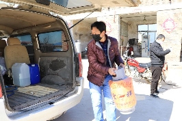 緊接著,馬不停蹄,許新衛(wèi)趕緊去為隔離人員充裝液化氣。許新衛(wèi)把液化氣空罐搬到車(chē)上,又是開(kāi)著他的面包車(chē),一溜煙地朝著液化氣公司而去,約莫10多分鐘,來(lái)到一家液化氣充裝點(diǎn)。搬下氣罐、充氣,付過(guò)100元現(xiàn)金后,許新衛(wèi)把氣罐搬到車(chē)上,再次回到隔離人員居住的民營(yíng)醫(yī)院,卸下氣罐后,已經(jīng)將近11時(shí)了,他又趕緊來(lái)到許灣村南卡點(diǎn),搖身一變,又成了一位測(cè)量體溫的“衛(wèi)生員”。 這樣的生活,自從初一開(kāi)始直到現(xiàn)在,他從來(lái)沒(méi)有停止過(guò)。