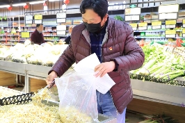 約莫半個(gè)小時(shí),菜挑選好了,稱(chēng)重包裝后,許新衛(wèi)推著購(gòu)物車(chē)到收款點(diǎn)付錢(qián)?!按竺?5元、大白菜3元、土豆13.5元......”收銀員一算,總計(jì)141.60元,微信付款后,許新衛(wèi)把購(gòu)物車(chē)推到自己的面包車(chē)前,裝好所購(gòu)物品后,驅(qū)車(chē)送到幾個(gè)隔離人員暫時(shí)居住的一家民營(yíng)醫(yī)院。