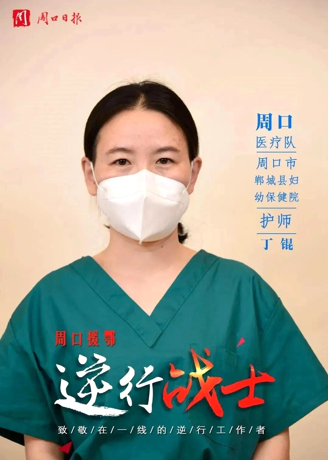 今年27歲的丁錕來(lái)自鄲城縣婦幼保健院重癥監(jiān)護(hù)室,她臨床經(jīng)驗(yàn)豐富,具有扎實(shí)的危重患者救治護(hù)理能力。在接到醫(yī)院支援武漢的通知后,第一時(shí)間向醫(yī)院遞交了請(qǐng)戰(zhàn)書(shū),主動(dòng)請(qǐng)纓支援武漢疫情前線。她奔赴武漢時(shí),1歲多的孩子還沒(méi)斷奶,她不但經(jīng)受著自己生理的痛苦,還經(jīng)受著孩子斷奶的精神打擊,以國(guó)家為重,毅然前行。正詮釋了她以“位卑未敢忘憂國(guó)”為格言而落實(shí)到具體的行動(dòng)上。