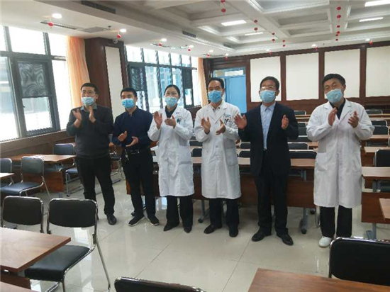 看到屏幕上的援鄂醫(yī)療隊(duì)員們,港區(qū)醫(yī)院董事長(zhǎng)孫繼祥顯得有些激動(dòng),他首先向王記表達(dá)了生日祝福。接著,孫繼祥對(duì)醫(yī)療隊(duì)員們說(shuō):“這次你們8位去武漢抗疫,很辛苦,為治愈當(dāng)?shù)氐牟∪烁冻隽撕芏嗪顾团Γ渤浞煮w現(xiàn)了優(yōu)秀共產(chǎn)黨員的先進(jìn)性。在這里,我也代表醫(yī)院向你們致以崇高的敬意和感謝。到今天,你們?cè)谖錆h已經(jīng)抗疫19天了,我們和你們的家人都無(wú)比想念你們,希望你們?cè)谀抢锢^續(xù)做好防護(hù)、注意安全,我們企盼著疫情早日結(jié)束,你們?cè)缛談P旋歸來(lái)。”