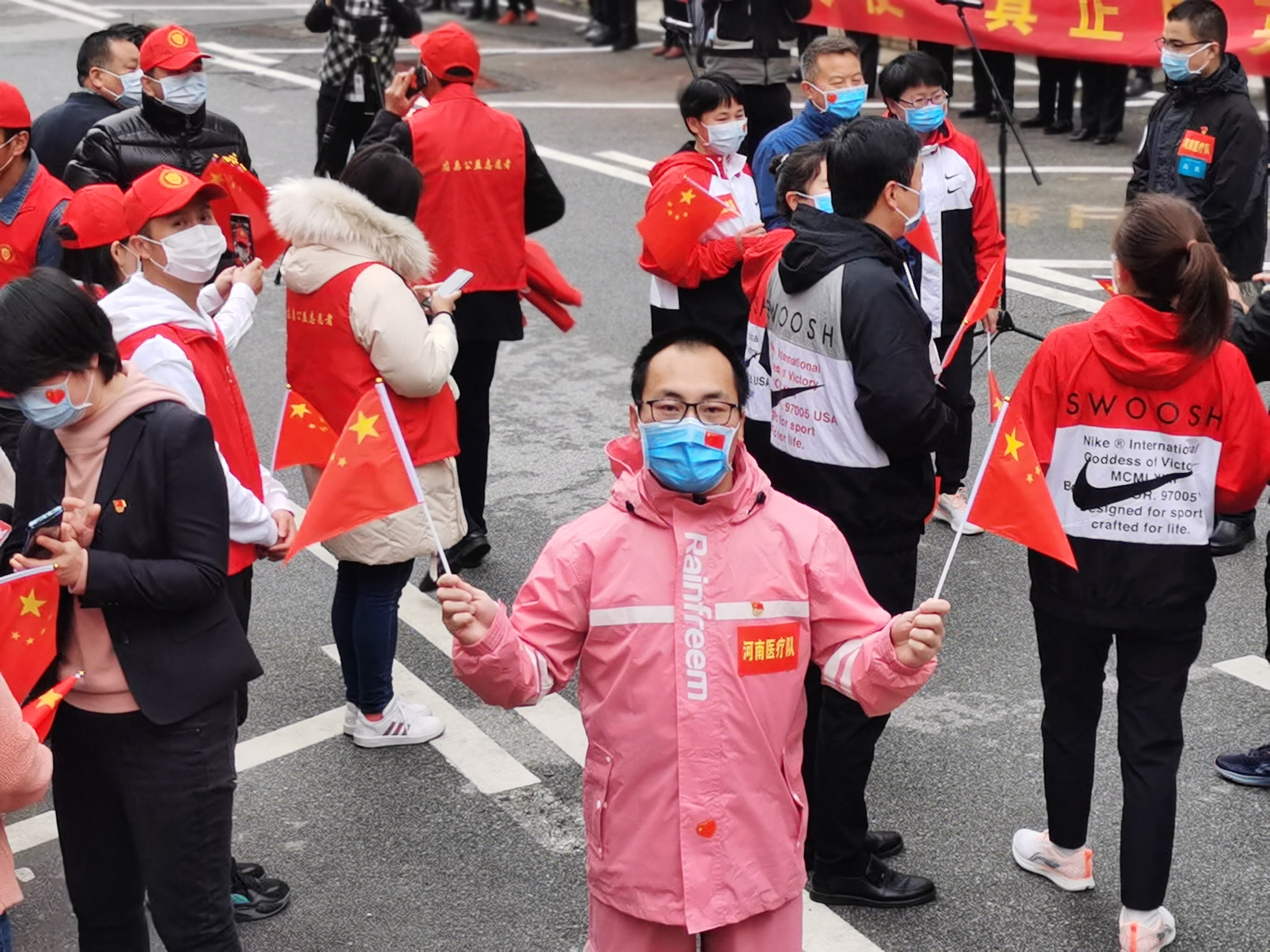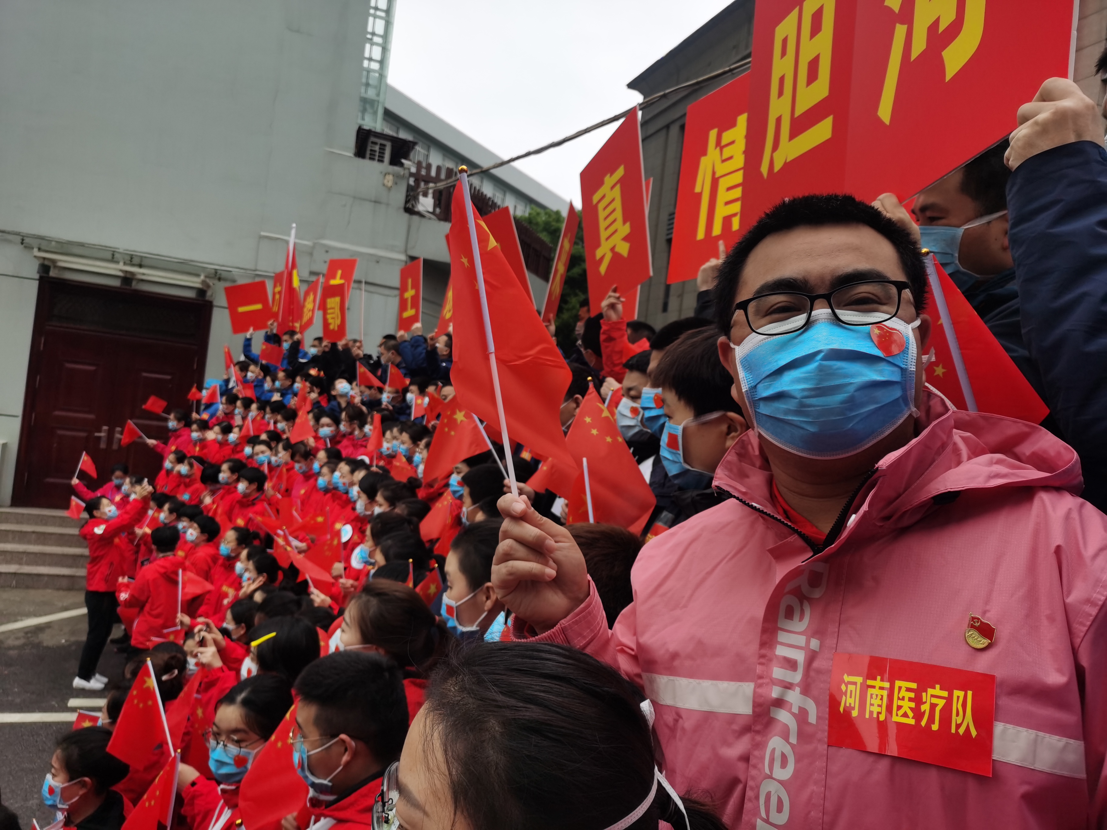 3月30日上午,在完成各自使命之后,按照河南省援鄂醫(yī)療隊統(tǒng)一安排起程凱旋。湖北街頭萬人空巷送英雄,街頭車輛長鳴笛,沿街循環(huán)播放紅歌《歌唱祖國》,勝利的歌聲激蕩勝利的心情。