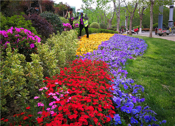 周口城區(qū)路邊鮮花盛開
