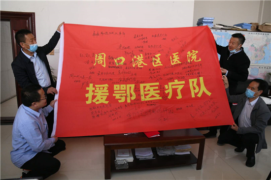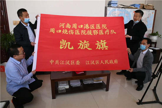 在武漢抗疫期間,周口港區(qū)醫(yī)院作為我市第三批援鄂梯隊(duì),由港區(qū)醫(yī)院院長賀志勇、麻醉科副主任醫(yī)師高年資,檢驗(yàn)科檢驗(yàn)師王記、內(nèi)科醫(yī)師尹東云、中西醫(yī)結(jié)合醫(yī)生田超、急診科的護(hù)士石愷麗、護(hù)士孫美清、許聽聽、鄭艷平,組成的周口援鄂醫(yī)療隊(duì),于3月3日上午出發(fā)馳援武漢,進(jìn)駐武漢商職醫(yī)院,開展新冠肺炎患者的救治和護(hù)理工作,在援鄂的29個(gè)日夜,他們和死神搏斗,搶救病人,用精湛的醫(yī)術(shù)和職業(yè)精神,贏得武漢各界的贊譽(yù)。