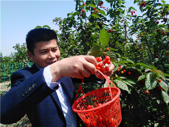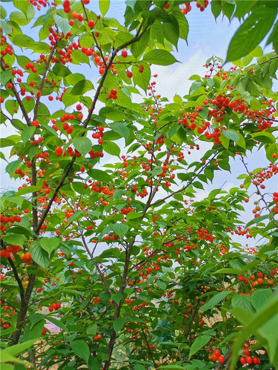 時(shí)下,武灣村近千畝櫻桃園里棵棵樹(shù)上滿枝碩果,顆顆勻圓,與枝葉互相掩映,濃艷流鮮。信手采擷嘗鮮,便有“四月朱櫻乍熟,甘露一般清味”的切身體驗(yàn)。