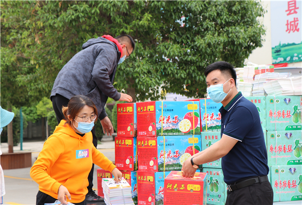 不久,一輛小貨車駛入實驗小學院內,滿載著水果、毛巾、酒精、消毒液、洗手液和圖書等物資,總計價值兩萬余元。吳玲玲跳下車,向迎上來的韓濤簡單地打了招呼,便和學校工作人員一起把水果等物資卸載搬運。