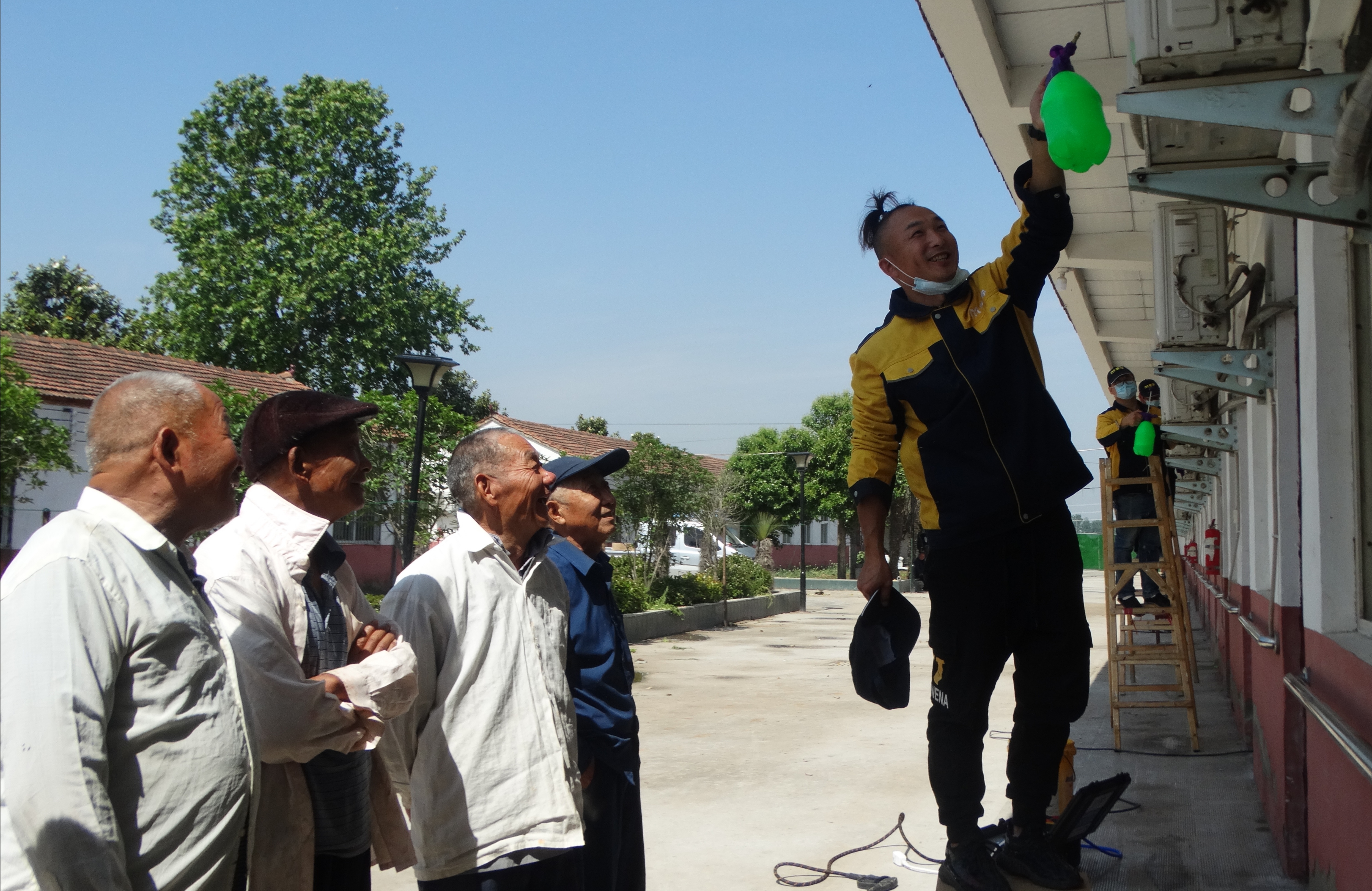 在敬老院,沈丘縣點(diǎn)滴電器公司的職工認(rèn)真為每個(gè)五保老人房間的空調(diào)都進(jìn)行了清洗、消殺、維護(hù)?!跋胂胂奶靵?lái)到了,看到自己房間的空調(diào)被清洗得干干凈凈,俺打心眼里高興?!弊跇?shù)蔭下休息的五保老人王大媽興奮地告訴記者。