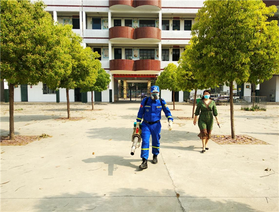 5月13日,我市中心城區(qū)低年級(jí)小學(xué)生將迎來(lái)返校復(fù)課。為保障孩子們身體健康,5月10日,周口市六一路小學(xué)再次邀請(qǐng)周口市藍(lán)天救援大隊(duì)工作人員對(duì)校園重點(diǎn)部位進(jìn)行全面消毒殺菌,為低年級(jí)師生順利返校復(fù)課提供健康保障。(記者 黃佳 通訊員 劉芝 攝)