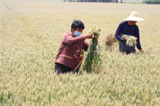 “今年共繁育良種小麥‘冠麥1號、中農(nóng)4007’兩個品種,這兩個品種的特點就是產(chǎn)量高、抗災(zāi)能力強。”棗集農(nóng)場副場長趙云霄介紹,我們要做的工作就是徹底清除田間雜株、雜草、雜穗、大麥、燕麥,以保證小麥良種純度。小麥去雜提質(zhì)對種子安全、糧食質(zhì)量保障是非常重要的一環(huán),目前只能依靠人工去雜,經(jīng)過兩次去雜提純后,第一代良種即將迎來豐收,預計今年畝產(chǎn)將達到1200斤。