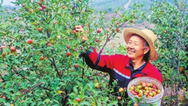 10月10日,靈寶市焦村鎮(zhèn)羅家村,位于國(guó)家4A級(jí)旅游景區(qū)娘娘山腳下的現(xiàn)代矮砧蘋(píng)果園里,去掉紙袋的紅蘋(píng)果綴滿(mǎn)枝頭,正曬著日光,散發(fā)出淡淡清香。
