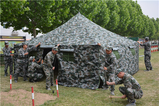 在這些民兵當(dāng)中,擔(dān)負(fù)醫(yī)療救護(hù)的綜合勤務(wù)排更是不簡單。他們是來自周口長城醫(yī)院的醫(yī)護(hù)人員,在今年的抗疫戰(zhàn)中,他們充分發(fā)揮基層黨員民兵作用,無論白天黑夜,冒著雨雪嚴(yán)寒,在抗疫一線的卡點上都留下了他們迷彩身影。趙軍濤是來該醫(yī)院的醫(yī)護(hù)人員,同時也是一名退伍老兵,他說,新時代的強(qiáng)軍戰(zhàn)歌已經(jīng)奏響,要以此次集訓(xùn)為契機(jī),不斷強(qiáng)化練兵備戰(zhàn)的緊迫意識、危機(jī)意識,以飽滿的政治熱情投入到緊張的訓(xùn)練中,用優(yōu)異成績?yōu)榇▍R區(qū)的后備力量建設(shè)增光添彩。