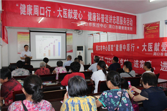 為普及健康素養(yǎng)基本知識與技能,倡導(dǎo)健康文明的生活方式,提高百姓的健康意識和自我保健能力,近日,由市、區(qū)衛(wèi)健委,周口市健康教育所、周口市中心醫(yī)院、川匯區(qū)健康教育所共同承辦的“健康中原行 大醫(yī)獻(xiàn)愛心”健康教育志愿服務(wù)隊走進(jìn)川匯區(qū)人和街道辦事處慶豐社區(qū)開展健康教育活動。