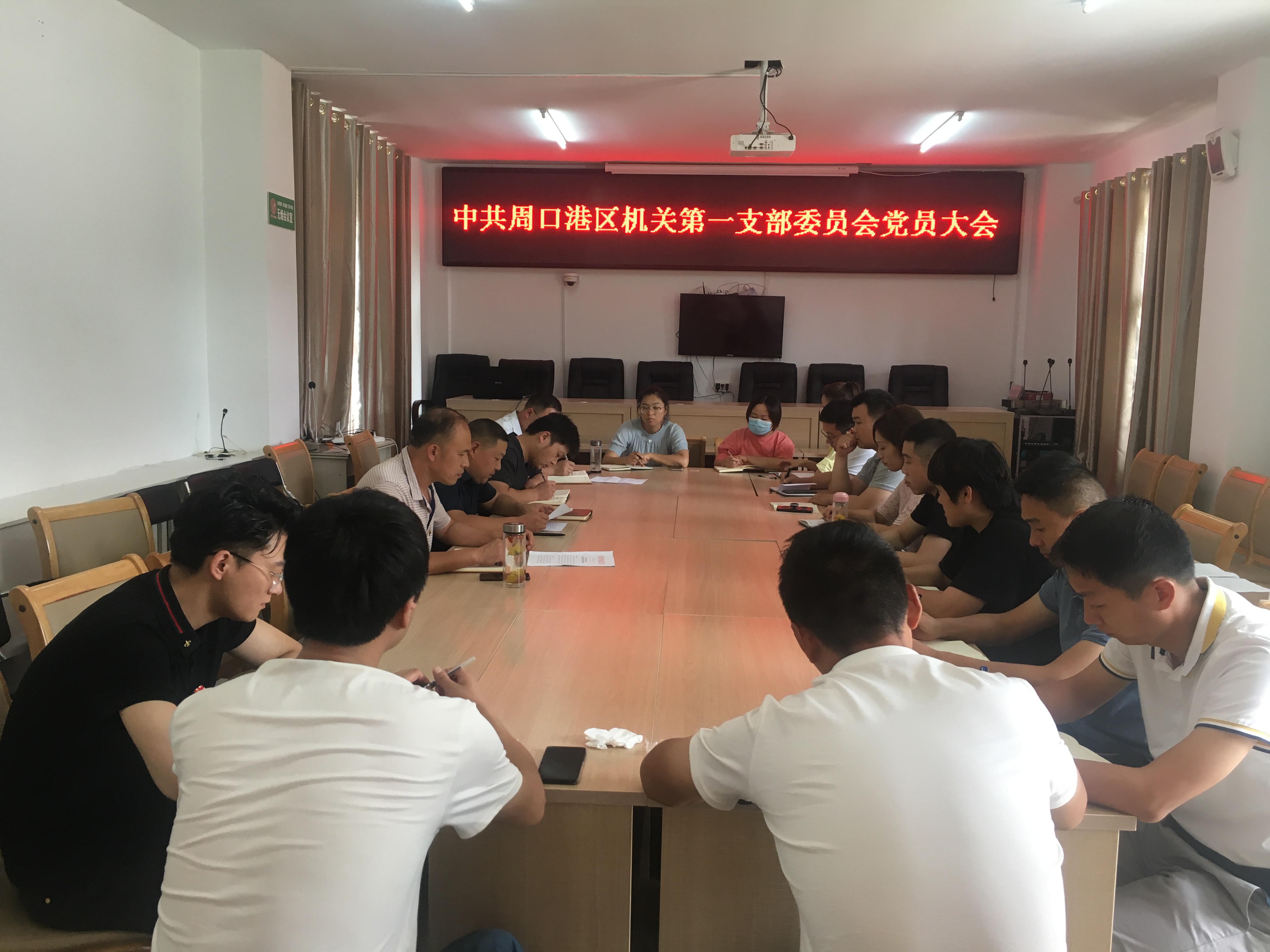 6月24日下午,周口港區(qū)機(jī)關(guān)第一黨支部召開全體黨員大會(huì),會(huì)議傳達(dá)《中共周口港區(qū)機(jī)關(guān)黨委關(guān)于組織開展港區(qū)機(jī)關(guān)黨章黨規(guī)黨紀(jì)教育月活動(dòng)的通知》,研究討論關(guān)于成立黨小組有關(guān)事宜。機(jī)關(guān)第一黨支部書記周繼增主持會(huì)議并上微黨課。港區(qū)機(jī)關(guān)第一黨支部全體黨員參加會(huì)議。