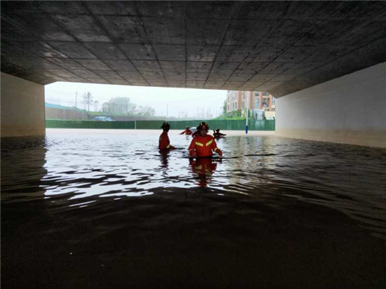 哪里有急難險(xiǎn)重,哪里就有消防指戰(zhàn)員的身影。當(dāng)日上午9時(shí)許,接到周口大道涵洞下有車輛被淹、司機(jī)遇困的警情后,示范區(qū)消防救援大隊(duì)緊急出動(dòng),面對(duì)齊胸的積水,他們無(wú)所畏懼,成功對(duì)遇困司機(jī)和車輛緊急施救。