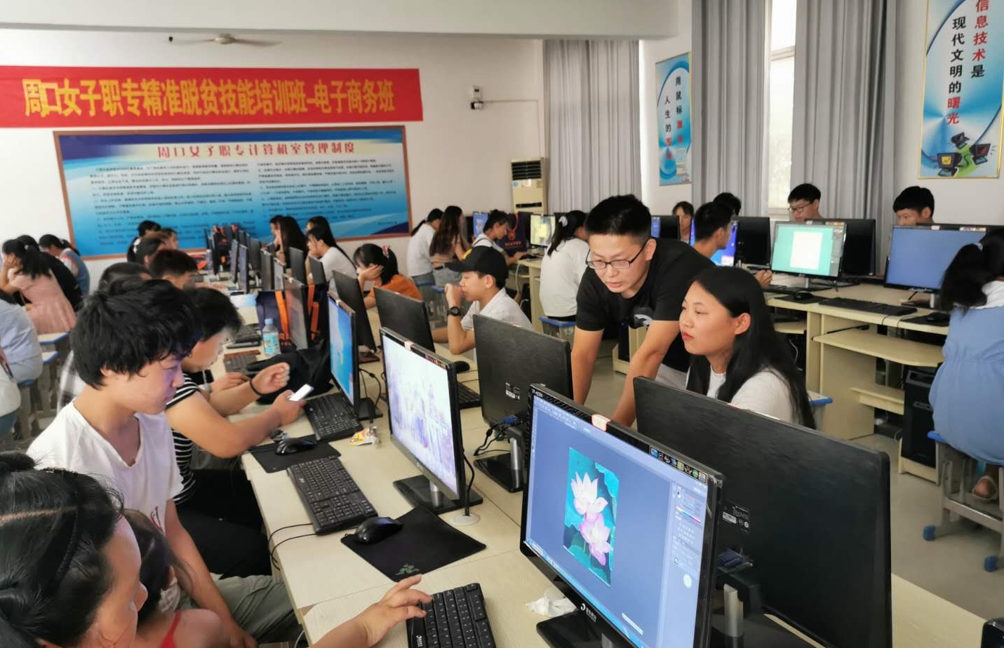 7月30日上午,商水縣“精準(zhǔn)脫貧技能培訓(xùn)班”開班儀式在周口女子職專二樓會(huì)議室舉行。儀式由縣教體局副局長(zhǎng)魏留全主持。教體局副局長(zhǎng)陳學(xué)禮勉勵(lì)參訓(xùn)學(xué)員要珍惜這個(gè)機(jī)會(huì),學(xué)得一技之長(zhǎng),走向脫貧致富路,并要求廣大培訓(xùn)教師要不負(fù)使命,本著“實(shí)際、實(shí)用、實(shí)效”的原則,高標(biāo)準(zhǔn)完成培訓(xùn)任務(wù),力爭(zhēng)做到培訓(xùn)一人,帶動(dòng)一家,一戶致富,帶動(dòng)一村。此次培訓(xùn)依托周口女子職專的專業(yè)特色,結(jié)合全縣的經(jīng)濟(jì)發(fā)展需求和學(xué)員的實(shí)際需要,精心選擇專業(yè)、合理設(shè)置培訓(xùn)課程,開設(shè)有服裝制作、電子商務(wù)、車工、焊工等技能培訓(xùn)班,力求通過(guò)短期培訓(xùn)提升學(xué)員的就業(yè)本領(lǐng)和創(chuàng)業(yè)能力,激發(fā)貧困人員的內(nèi)生動(dòng)力。開班儀式結(jié)束后,女子職專學(xué)校給學(xué)員免費(fèi)發(fā)放了學(xué)習(xí)用品和生活用具,參訓(xùn)學(xué)員在班主任的帶領(lǐng)下有序進(jìn)入教室開始了為期十五天的培訓(xùn)。此次培訓(xùn)有參訓(xùn)學(xué)員113人,都來(lái)自于全縣各鄉(xiāng)鎮(zhèn)建檔立卡戶。