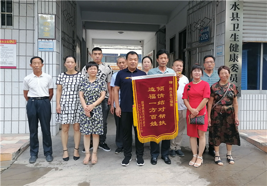 8月6日上午,商水縣衛(wèi)健委機(jī)關(guān)大門口,商水縣固墻鎮(zhèn)趙莊村黨支部書記趙西靈帶領(lǐng)村兩委班子,專程到縣衛(wèi)健委贈(zèng)送一面“傾情結(jié)對(duì)幫扶 造福一方百姓”的錦旗,代表全村近兩千名村民表達(dá)對(duì)縣衛(wèi)健委的感激之情。