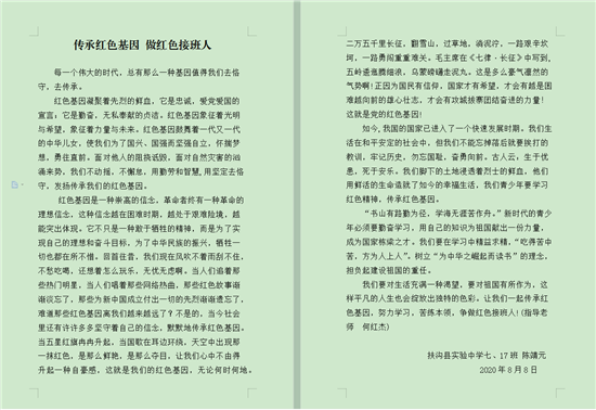 “大家好,我是新村小學(xué)二(2)班的齊度云,今天我給大家講一講抗日英雄王二小的故事……”主題教育活動中,扶溝縣新村小學(xué)通過講好《抗日英雄王二小》《民族英雄吉鴻昌》《狼牙山五壯士》等紅色故事,辦好“祖國您好”“童心向黨”“黨在我心中”為內(nèi)容的手抄報(bào),開展“學(xué)雷鋒愛護(hù)環(huán)境”社會實(shí)踐、組織教師和學(xué)生代表到河南確山竹溝革命紀(jì)念館實(shí)地參觀等活動,讓學(xué)生們了解英烈事跡,學(xué)習(xí)英雄熱愛祖國的精神,引導(dǎo)青少年樹立遠(yuǎn)大志向,努力為實(shí)現(xiàn)中華民族偉大復(fù)興的中國夢而奮斗;扶溝縣實(shí)驗(yàn)小學(xué)通過網(wǎng)絡(luò)共唱《五星紅旗》《我們是共產(chǎn)主義接班人》《我愛北京天安門》等紅色歌曲,共讀《雷鋒日記》《血染金達(dá)菜》《草房子》等紅色書籍,寫一篇好文章等活動,培養(yǎng)學(xué)生良好的讀書習(xí)慣,激發(fā)學(xué)生的愛國情懷,引導(dǎo)廣大青少年自覺弘揚(yáng)紅色傳統(tǒng)、傳承紅色基因。