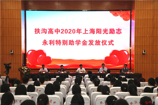 9月3日,上海陽光勵志獎學(xué)金發(fā)放儀式在扶溝縣高中舉行。副縣長史凱歌,縣教體局局長翟連生,扶溝高中全體領(lǐng)導(dǎo)班子、教師代表、獲獎學(xué)生和部分學(xué)生代表共計200余人參加了發(fā)放儀式。