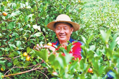 “去年9月17日上午,天空下著細(xì)雨,總書記來到油茶園中,實(shí)地察看油茶樹種植和掛果情況,詢問鄉(xiāng)親們家庭、務(wù)工和收入情況。當(dāng)時(shí),總書記就是在這棵油茶樹邊叮囑我們:利用荒山推廣油茶種植,既促進(jìn)了群眾就近就業(yè),帶動(dòng)了群眾脫貧致富,又改善了生態(tài)環(huán)境,一舉多得。要把農(nóng)民組織起來,面向市場,推廣‘公司+農(nóng)戶’模式,建立利益聯(lián)動(dòng)機(jī)制,讓各方共同受益。要堅(jiān)持走綠色發(fā)展的路子,推廣新技術(shù),發(fā)展深加工,把油茶業(yè)做優(yōu)做大,努力實(shí)現(xiàn)經(jīng)濟(jì)發(fā)展、農(nóng)民增收、生態(tài)良好?!?/p>