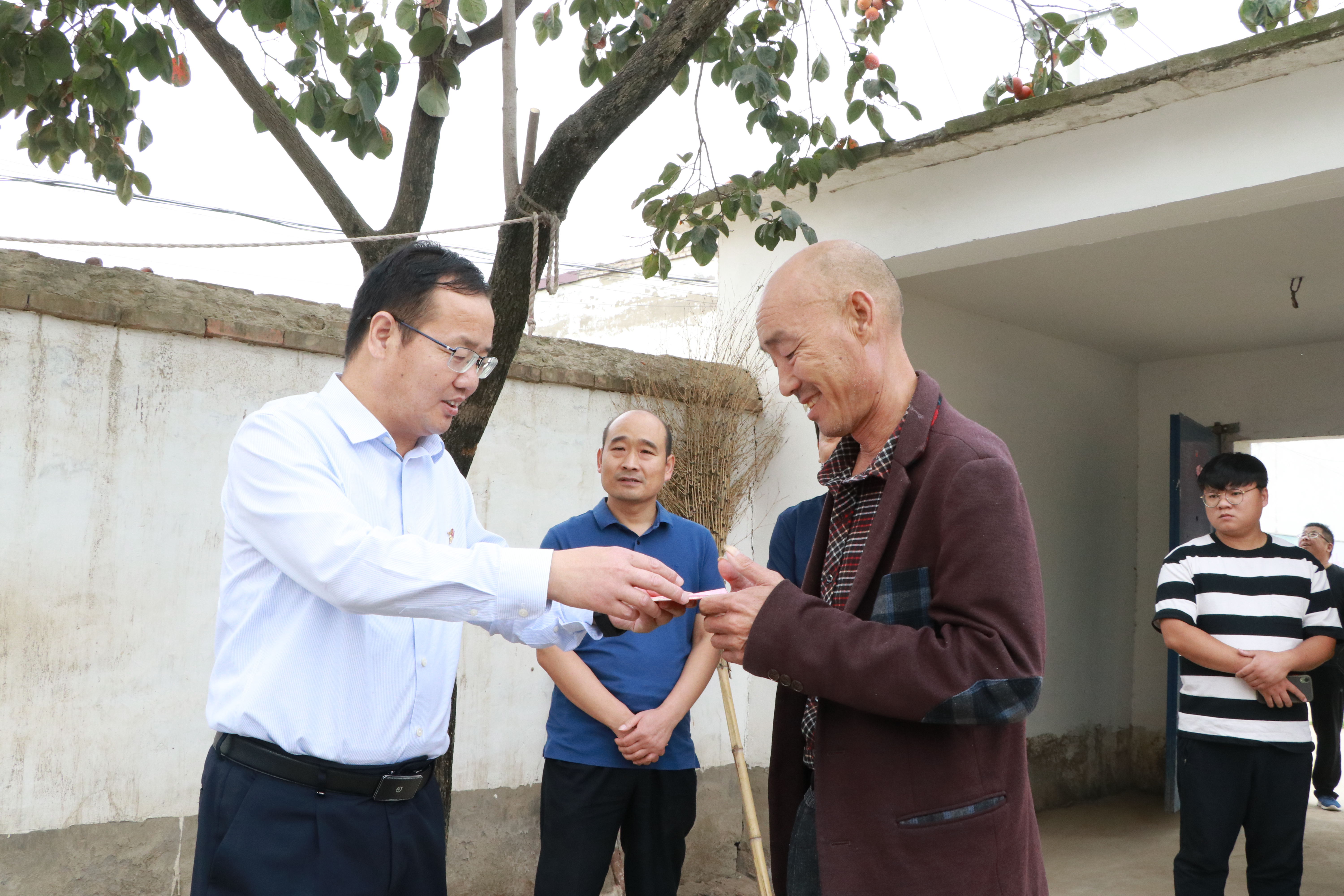 在貧困戶家中,張建黨與貧困群眾促膝談心,詳細(xì)了解個(gè)人及其家人的身體狀況、家庭生活情況、送去了生活用品和慰問金,更送去了黨和政府的關(guān)懷。