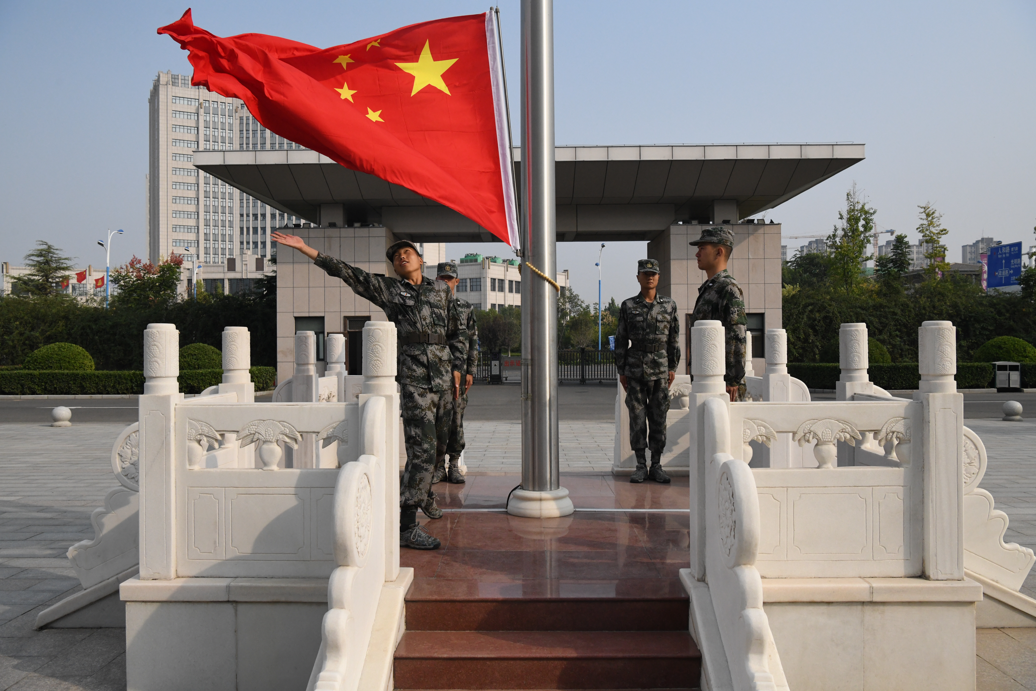 國(guó)旗飄揚(yáng)激發(fā)革命斗志,軍歌嘹亮詮釋忠誠(chéng)誓言。10月1日上午,周口軍分區(qū)舉行升國(guó)旗儀式慶祝中華人民共和國(guó)71周年華誕。來自周口軍分區(qū)機(jī)關(guān)、市民兵武器裝備倉庫的全體官兵職工、文職人員80人參加了儀式。周口軍分區(qū)司令員湯維政主持儀式。當(dāng)日8時(shí)許,全體官兵在軍分區(qū)機(jī)關(guān)營(yíng)區(qū)升旗臺(tái)前整齊列隊(duì),精神飽滿,士氣昂揚(yáng),帶著對(duì)祖國(guó)最熱忱的祝福,帶著對(duì)生活最美好的憧憬,等待著最莊嚴(yán)時(shí)刻的到來。隨著一聲“迎國(guó)旗”的洪亮口令,英姿颯爽的4名護(hù)旗手邁著鏗鏘有力的步伐護(hù)送國(guó)旗走向升旗臺(tái)。伴隨著雄壯的《義勇軍進(jìn)行曲》,升旗手抬手振臂,鮮艷的五星紅旗迎風(fēng)展開,在官兵們的注目下冉冉升起。