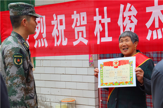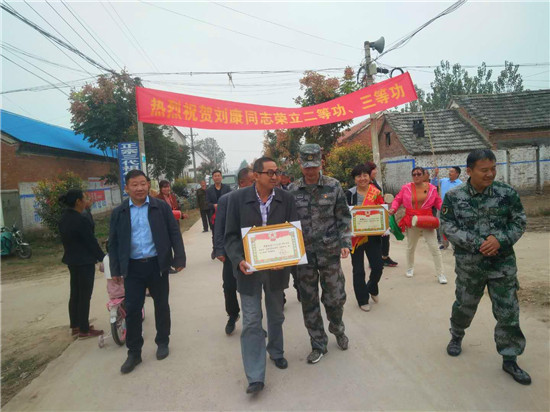“一人立功,全家光榮?!泵棵盾姽φ?、每張立功喜報(bào),都凝結(jié)著軍人矢志強(qiáng)軍的努力,承載的不僅是榮譽(yù)褒獎(jiǎng),更是全社會(huì)的尊崇。扶溝縣作為河南省“雙擁模范縣”,歷來(lái)就有崇軍尚武、擁軍優(yōu)屬的優(yōu)良傳統(tǒng),扶溝縣人武部和縣退役軍人事務(wù)局通過(guò)把立功喜報(bào)送到每一名立功的軍人家中,并通過(guò)媒體平臺(tái)大力宣傳,切實(shí)提高軍人軍屬的自豪感,讓軍功章閃耀新時(shí)代,讓軍人成為全社會(huì)尊崇的職業(yè)。 ③5