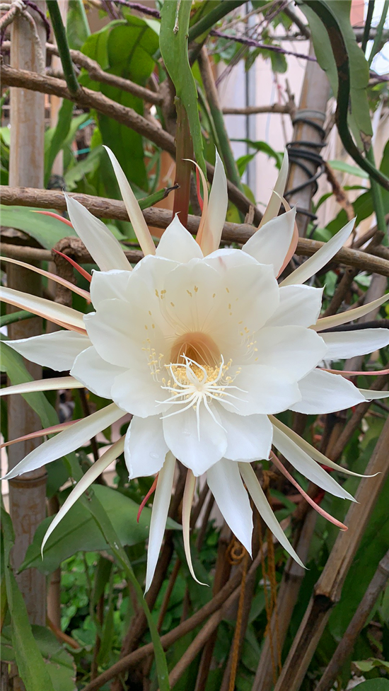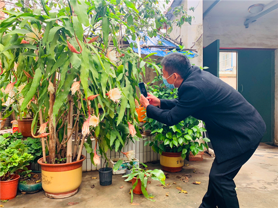 “養(yǎng)它20多年了,頭一次見它白天開花?!泵缣觳耪f,從今年6月份到現(xiàn)在曇花幾乎每個(gè)月都會(huì)開花一次,前面幾次開花都是在晚上9點(diǎn)到11點(diǎn)之間開放,而這一次在白天開放,他感到十分驚奇。究其原因,養(yǎng)了幾十年花的苗天才說,可能跟這些天溫度急劇下降有關(guān)系。
