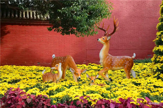 會上,相關(guān)負(fù)責(zé)人對當(dāng)前菊展的布展情況進(jìn)行了通報。截至10月17日,耗時近半個月的第三屆重陽菊展布展工作已經(jīng)結(jié)束,布展面積約24000平方米,總計約40萬盆的金菊已全部布展到位。同時,設(shè)置200個景觀造型,各類觀賞菊150余種,大中小各類精品菊花3000余盆,等待游客的檢閱。