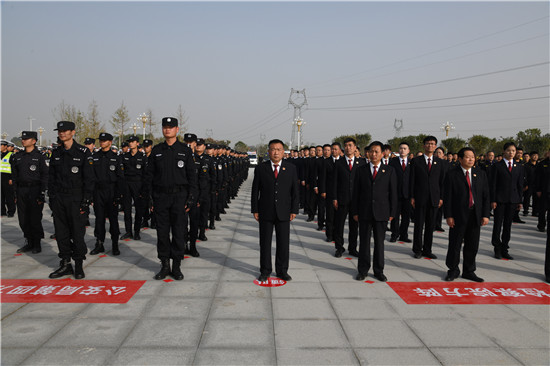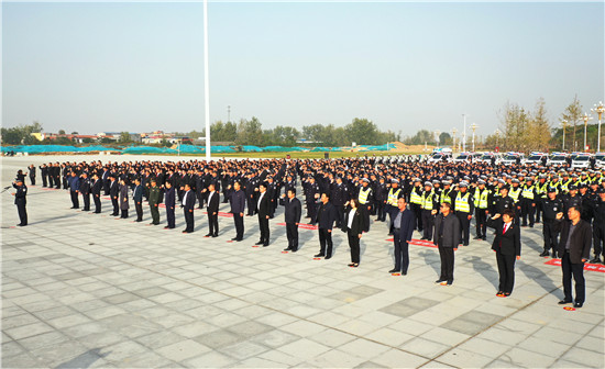“對黨忠誠、服務人民、執(zhí)法公正、紀律嚴明……”10月22日下午,在商水縣學習總書記訓詞、保百姓平安暨“暖冬行動”誓師大會上,千余名平安建設成員單位黨員干部和政法干警的朗朗宣誓聲響徹天空。這標志著該縣提升公眾安全感和政法機關執(zhí)法滿意度戰(zhàn)役全面打響。縣委書記孔陽出席會議并宣布啟動儀式開始。縣委副書記、縣長田林講話。縣委副書記張峰主持會議。縣人大常委會主任李德來,縣政協主席孫培忠,縣委常委李本磊、王勇、王衛(wèi)東、黃宇飛、王中紅、何永華、崔巖、楊敏等在商的縣處級領導干部出席會議。